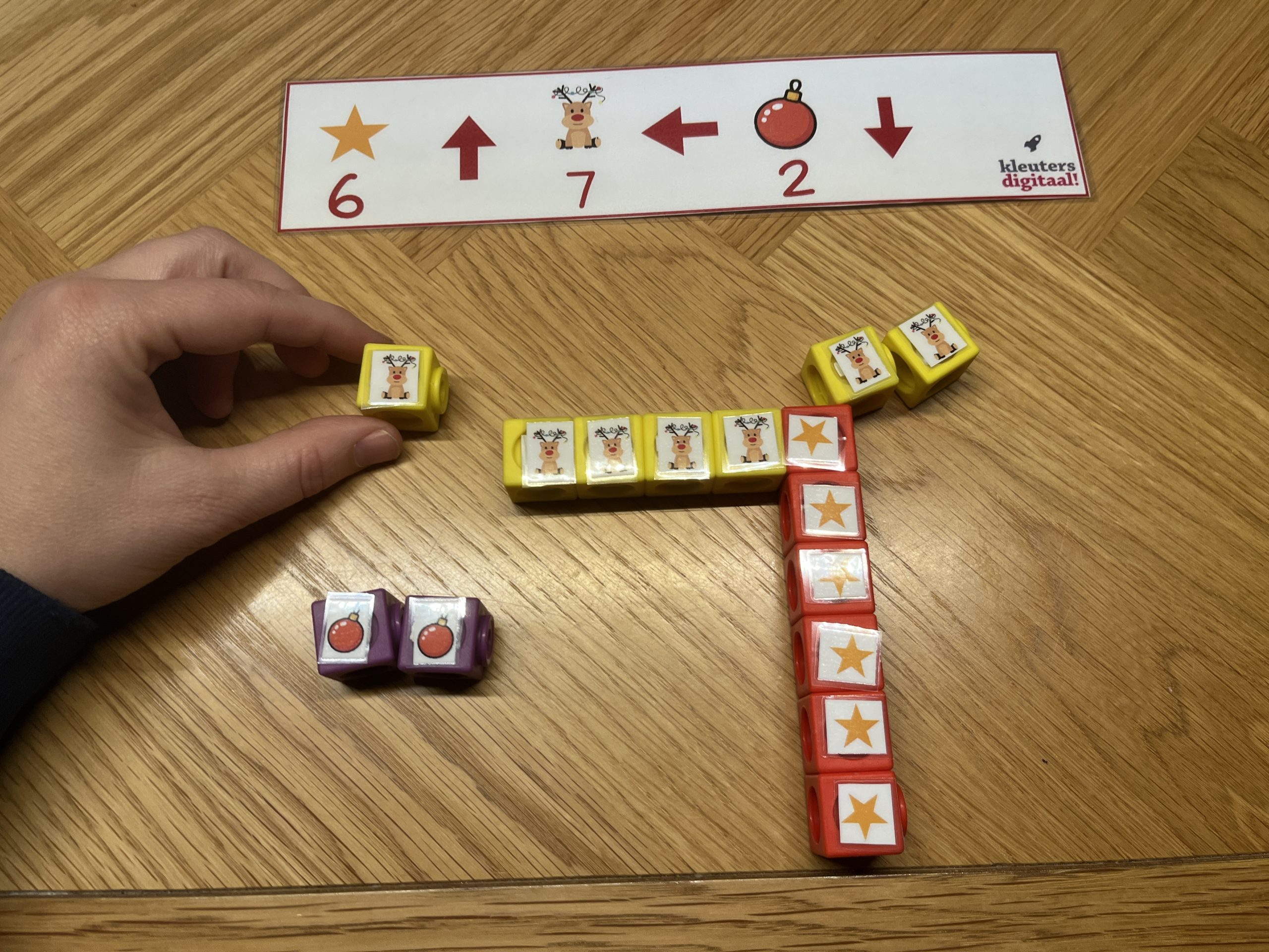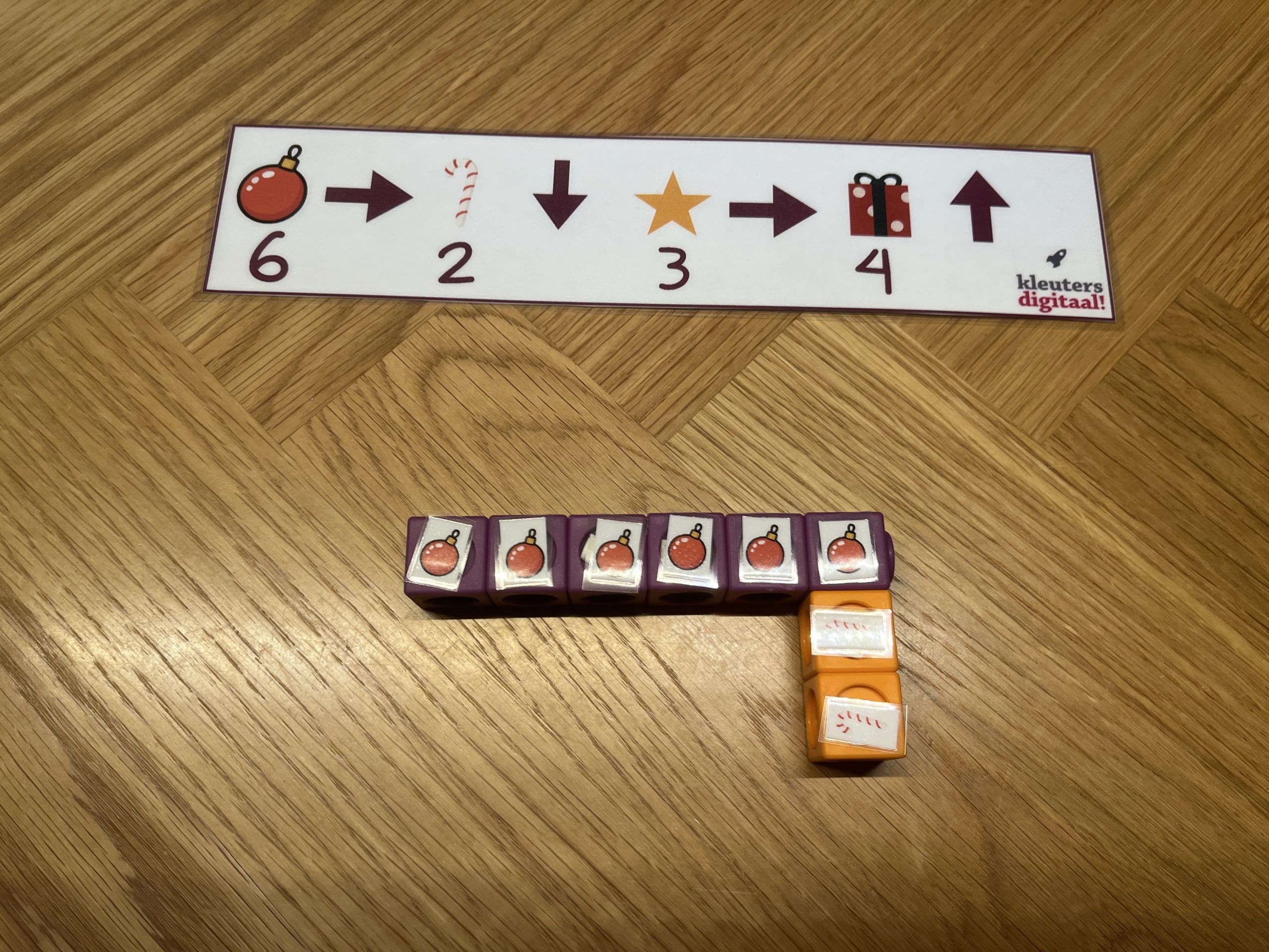 Het eerste wat je leest is dat je zes blokjes met een kerstbal pakt. Deze klik je in elkaar.