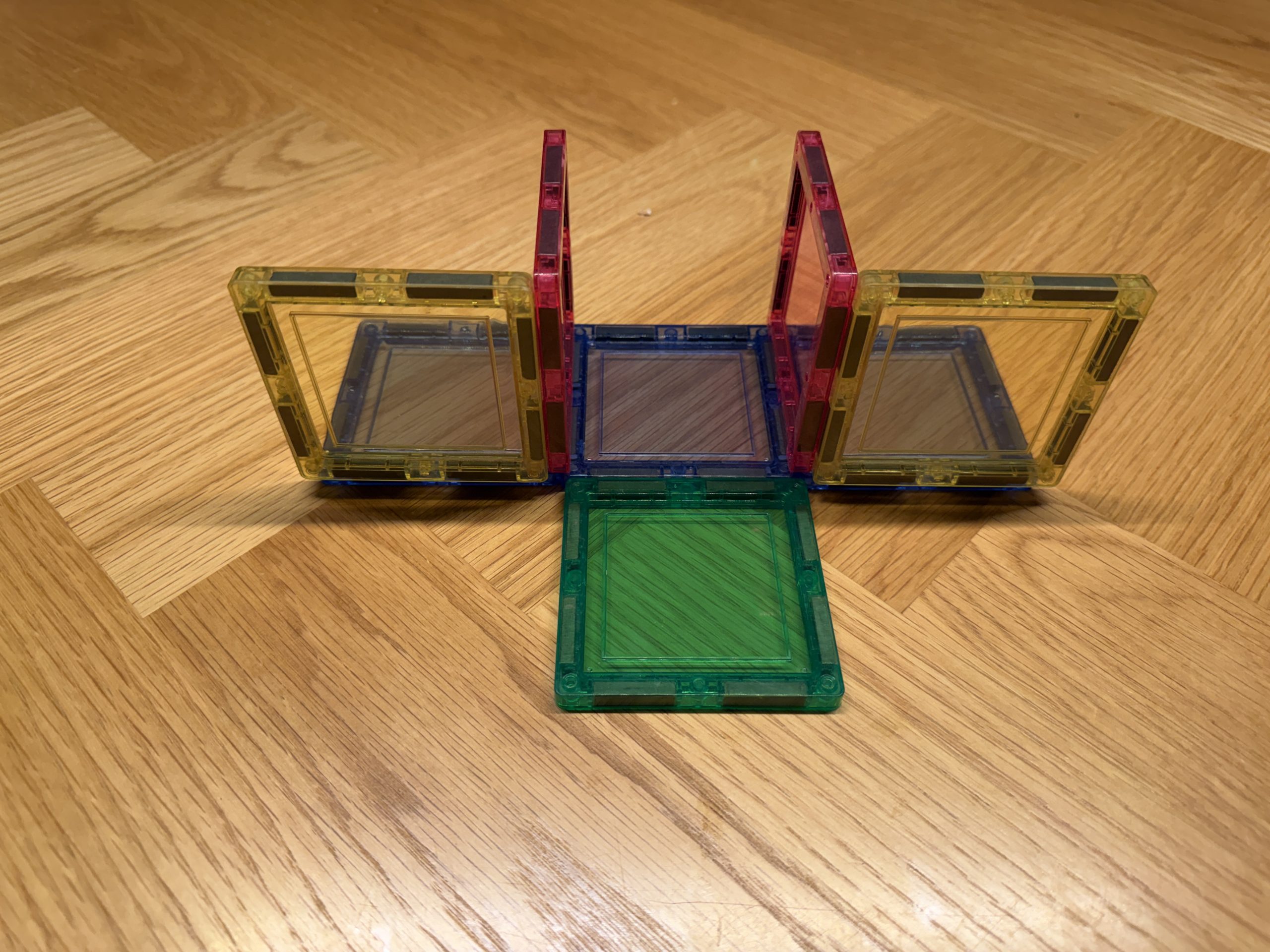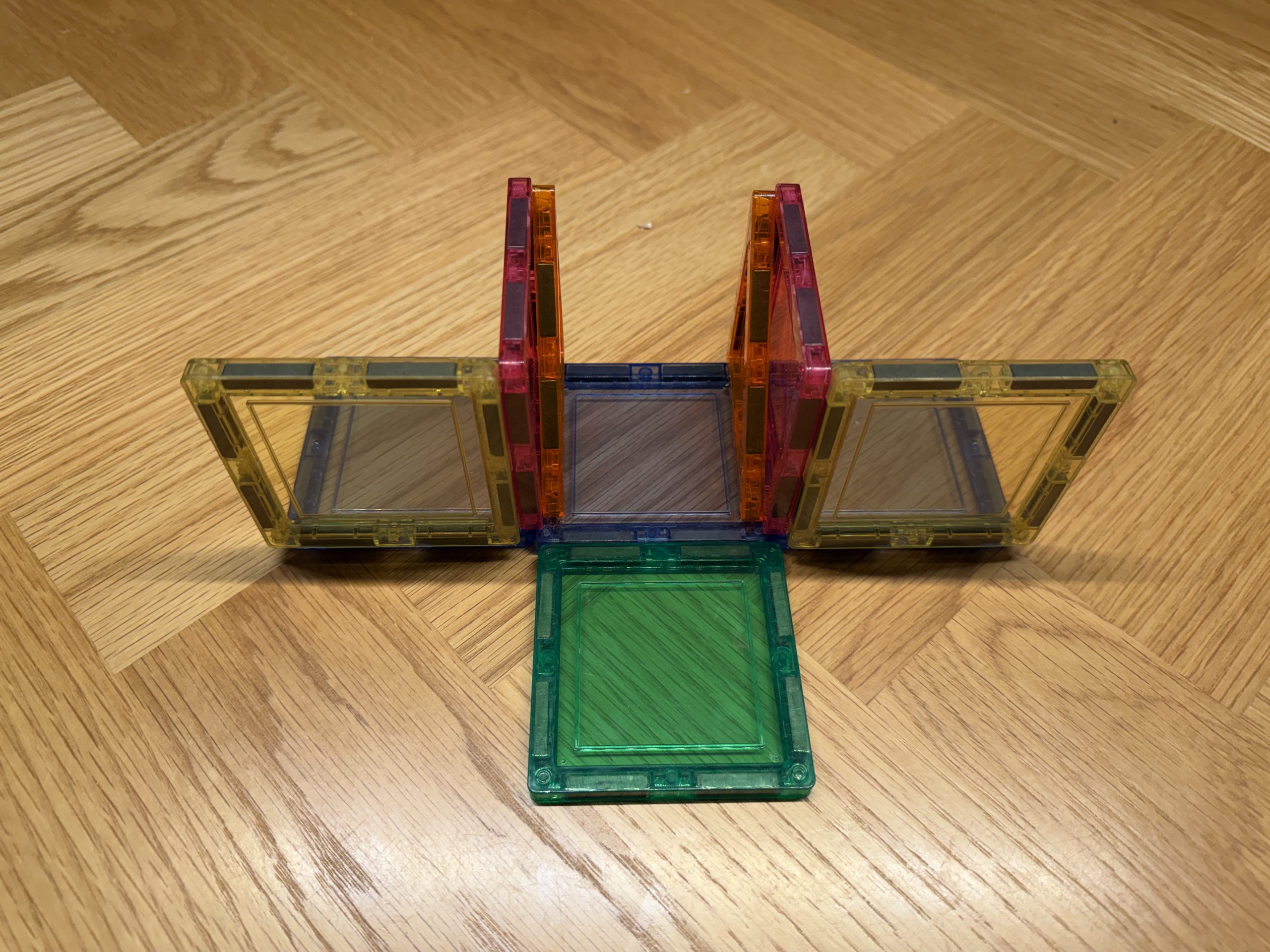Daarna zet je twee schuinen magneten in het vierkant.